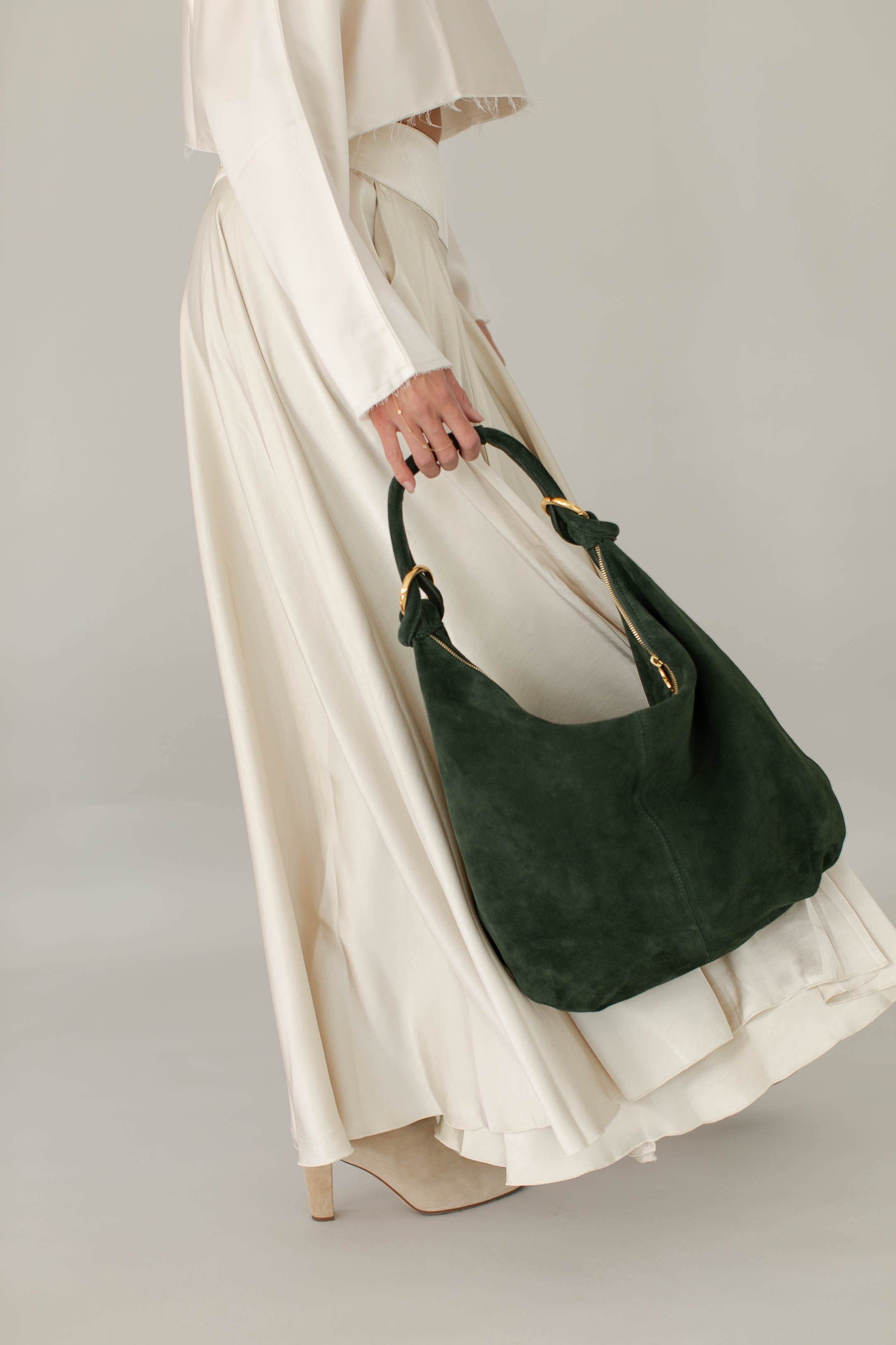 Introducing The Anello Hobo, a luxurious statement piece crafted in sumptuous suede. This generously sized hobo features our signature anello hardware detail and a relaxed silhouette that effortlessly elevates any look.